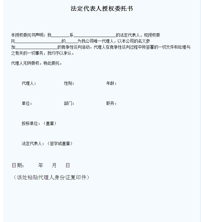 ????5、投標人的授權委托人必須攜帶身份證并和法人委托書(shū)中委托人一致,否則視為廢標。
