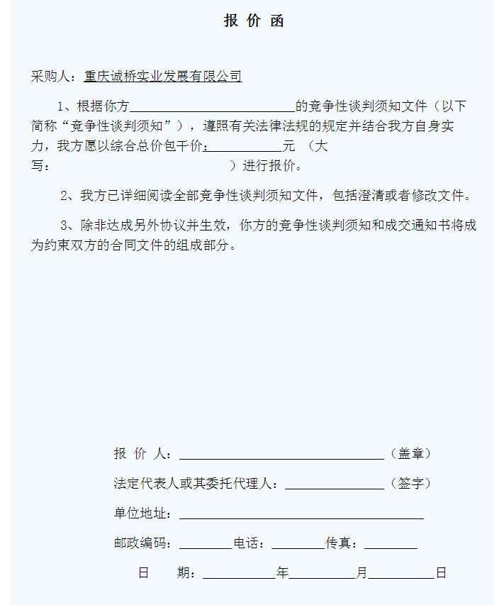 ????2、2017年5月26日北京時(shí)間下午15:00之前將投標密封文件送達重慶誠橋實(shí)業(yè)發(fā)展有限公司綜合部,超過(guò)規定時(shí)間送的投標單位,取消其投標資格。