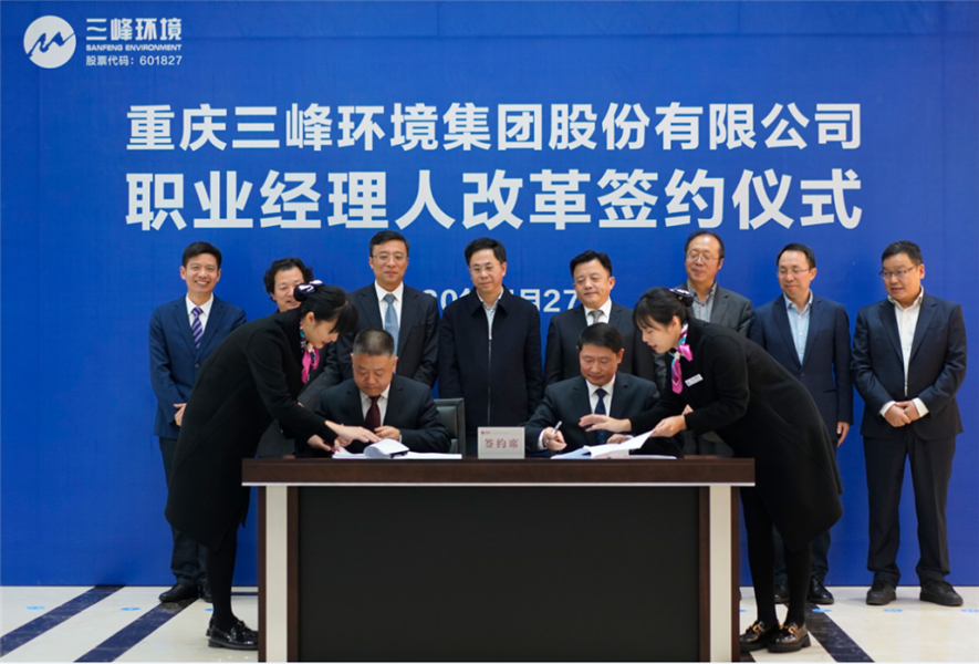 11月27日,三峰環(huán)境職業(yè)經(jīng)理人改革簽約儀式在集團總部成功舉行。市國資委、市水務(wù)資產(chǎn)公司黨委,三峰環(huán)境董事、監事、高管團隊出席并見(jiàn)證簽約儀式。