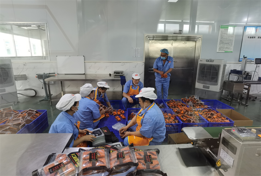 9月2日,祿苑西南總部基地2號樓,寬敞明亮、干凈整潔的生產(chǎn)車(chē)間里,集自動(dòng)炒鍋、灌裝機等一體的高端生產(chǎn)設備整齊排列,設備高速運轉,工人正在忙碌地進(jìn)行裝袋。